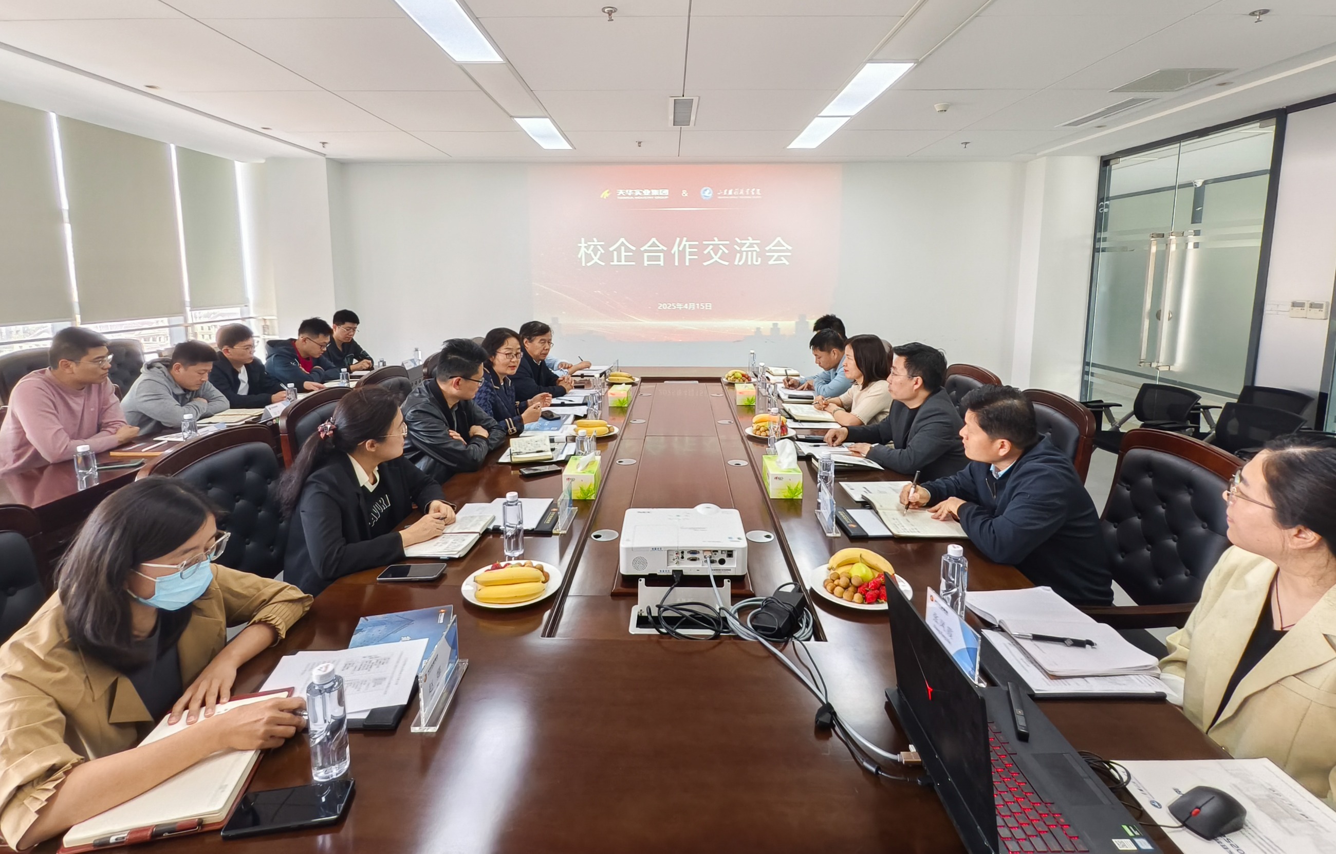 4月15日,山東勝利職業(yè)學院招生就業(yè)負責人劉冰,人才發(fā)展與繼續(xù)教育學院(培訓學院)副院長、建筑工程教研室主任馬軼男,副院長馬心俐等一行6人到天華實業(yè)集團參觀調(diào)研,并就校企合作、產(chǎn)教融合等方面開展座談交流。天華實業(yè)集團副總經(jīng)理徐帥菊,安全總監(jiān)、工程部經(jīng)理商雷雷及相關部門同事陪同。